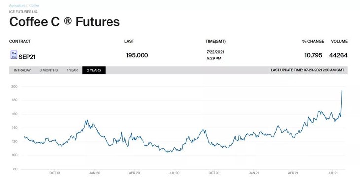 受全球氣候變化、產(chǎn)量變化、貨幣政策等多種因素影響,近年來咖啡期貨價格波動較大,特別是在疫情期間,由于供應(yīng)鏈中斷和需求增長,咖啡期貨價格一度飆升。